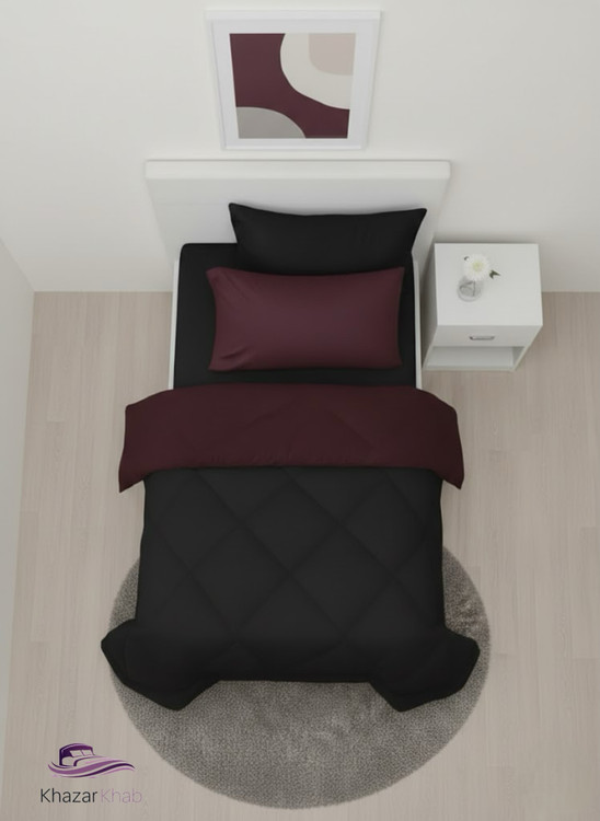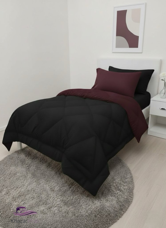 لحاف یکنفره(۱۲۰و۹۰) خزر خواب تکرنگ دو رویه(زرشکی مشکی)