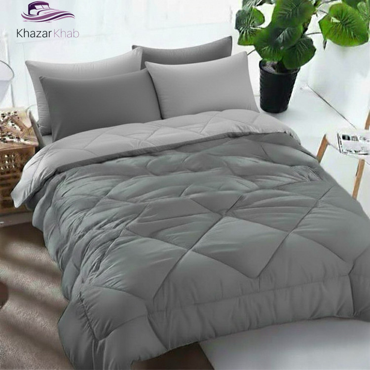 لحاف دونفره تکرنگ خزرخواب 7 تکه (طوسی نقره ای)