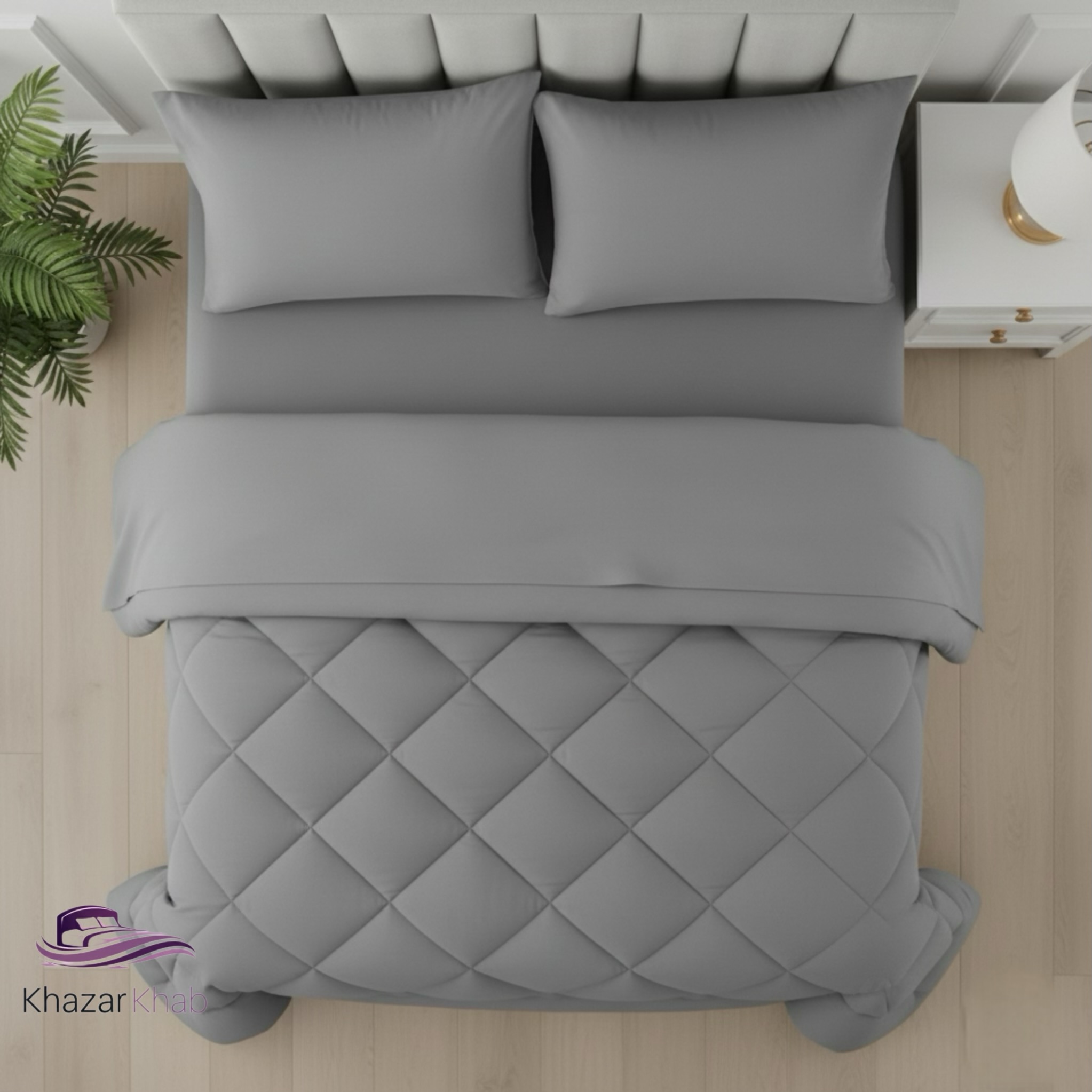 الیاف ۳۵۰ گرمی: استفاده از الیاف با تراکم ۳۵۰ گرم در هر متر مربع، تعادلی بینظیر میان وزن کم و گرمای مطلوب ایجاد کرده است. این لحاف برای تمامی فصول، به ویژه شبهای سرد، انتخابی ایدهآل است.