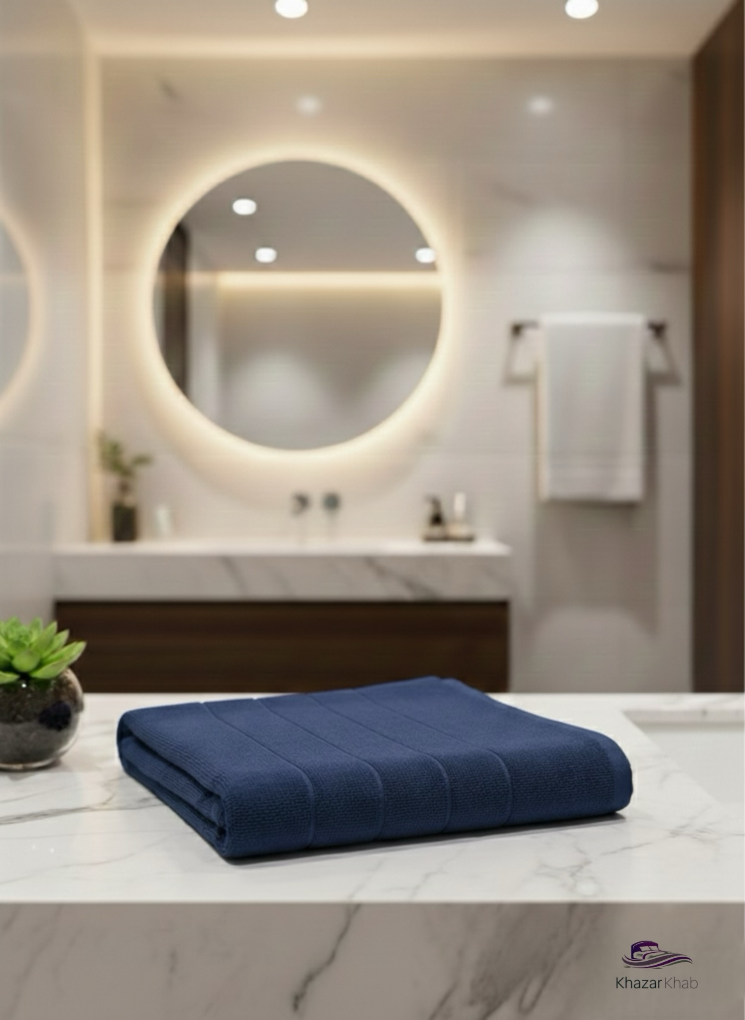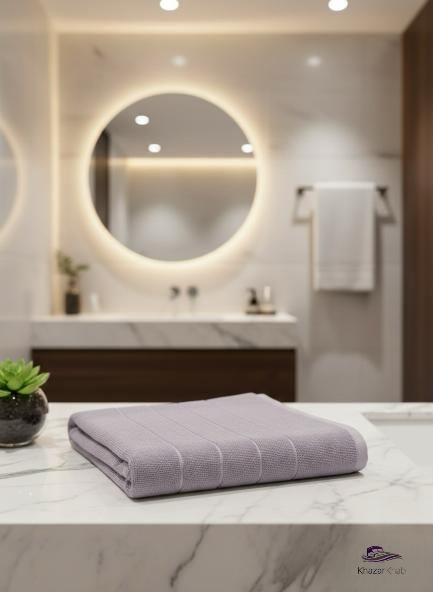 جنس ۱۰۰٪ نخ طبیعی: برخلاف حولههای ارزانقیمت بازار که درصد بالایی پلیاستر دارند، این حوله از نخ خالص بافته شده است. این موضوع باعث میشود پوست شما دچار حساسیت نشود و آبگیری آن ۳ برابر مدلهای معمولی باشد.