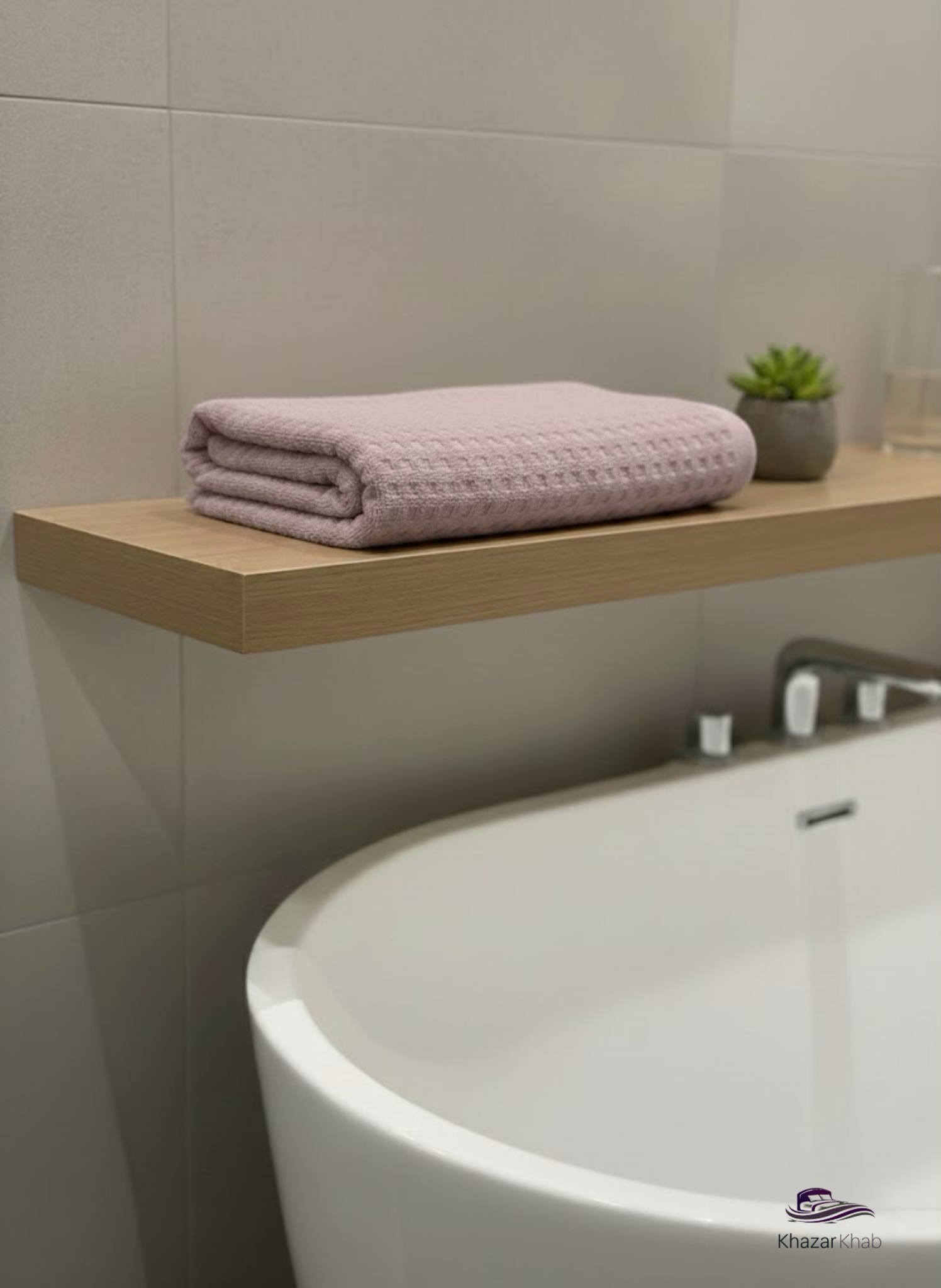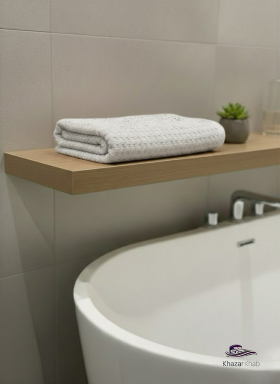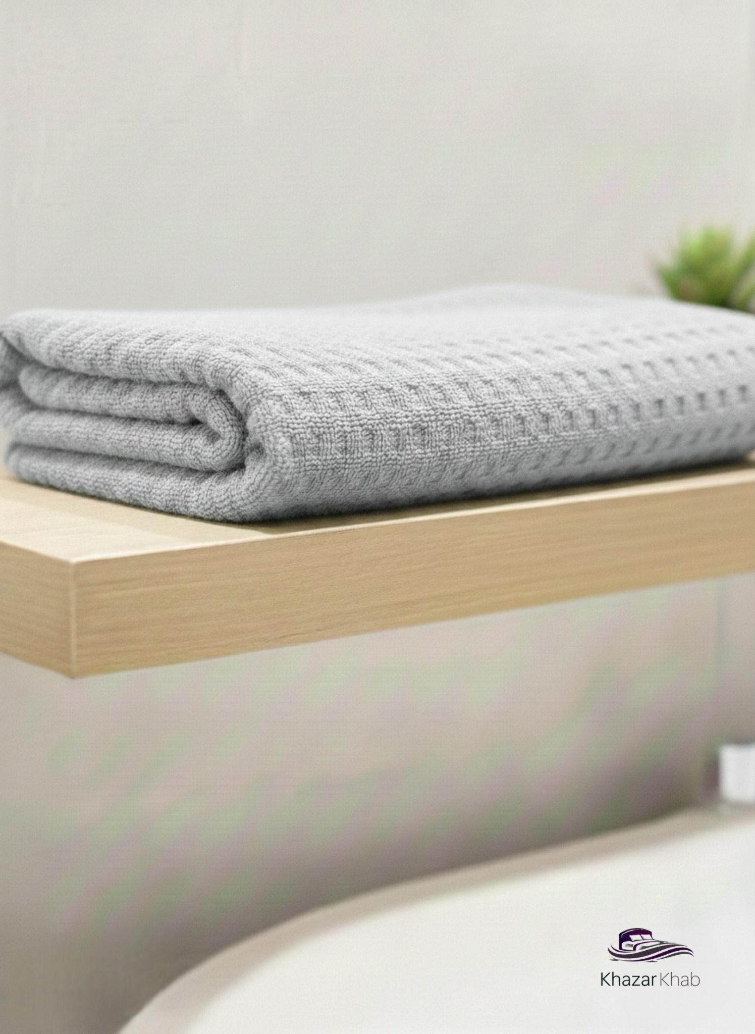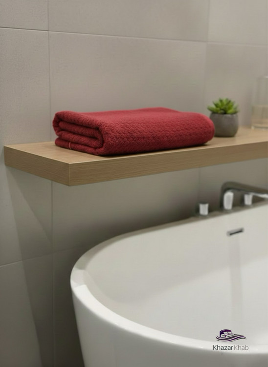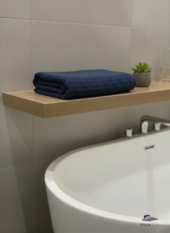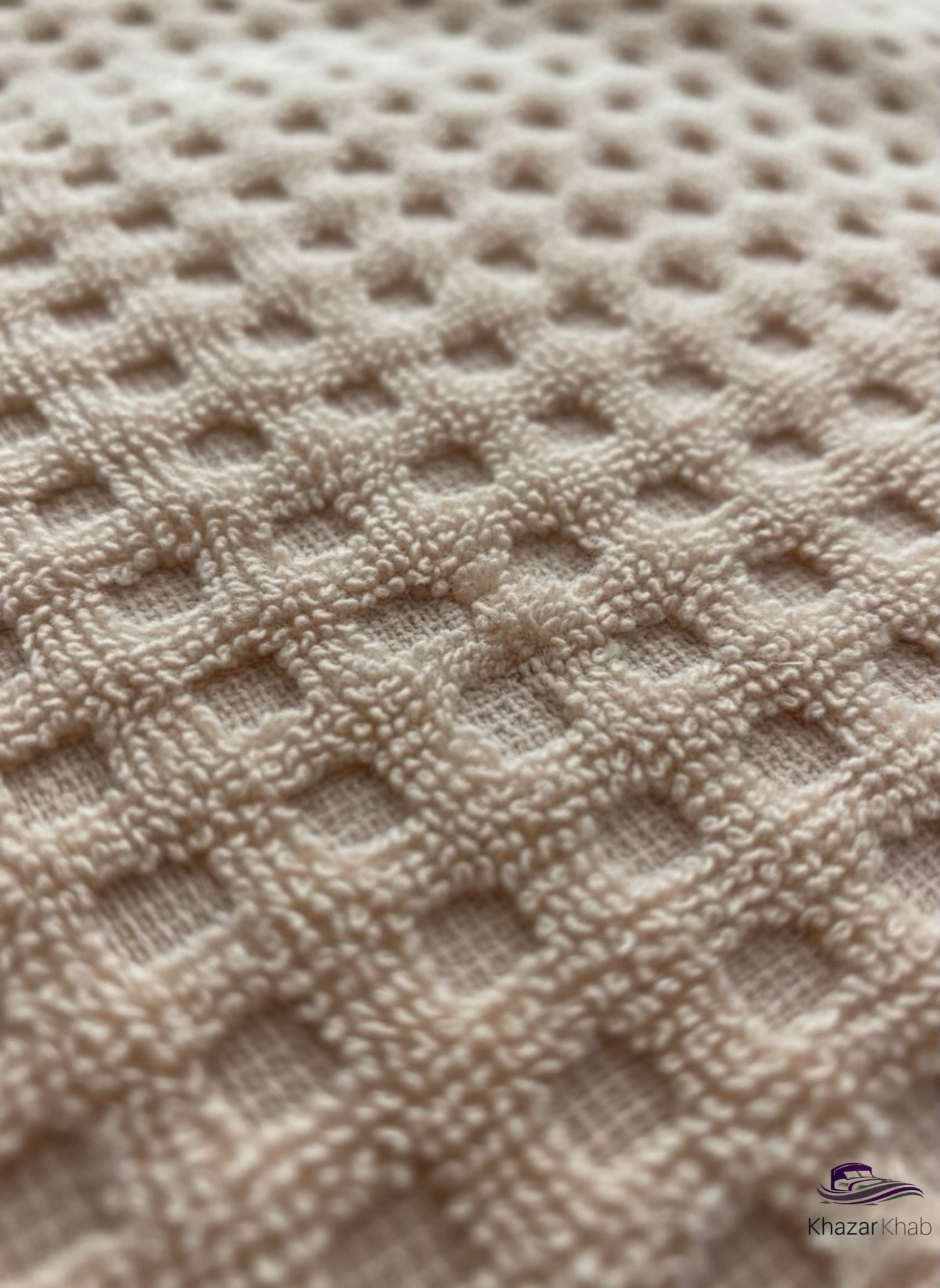 نمای نزدیک از بافت مخملی و مربعی حوله استخری پنبه‌ای برند نارین ساپ