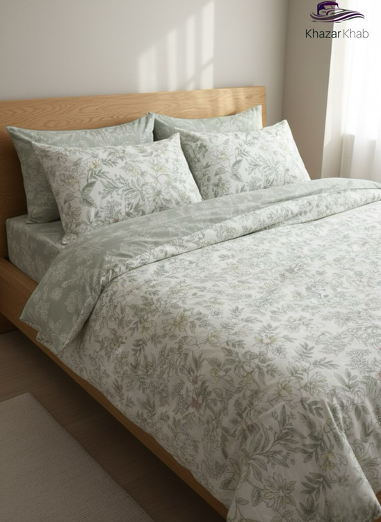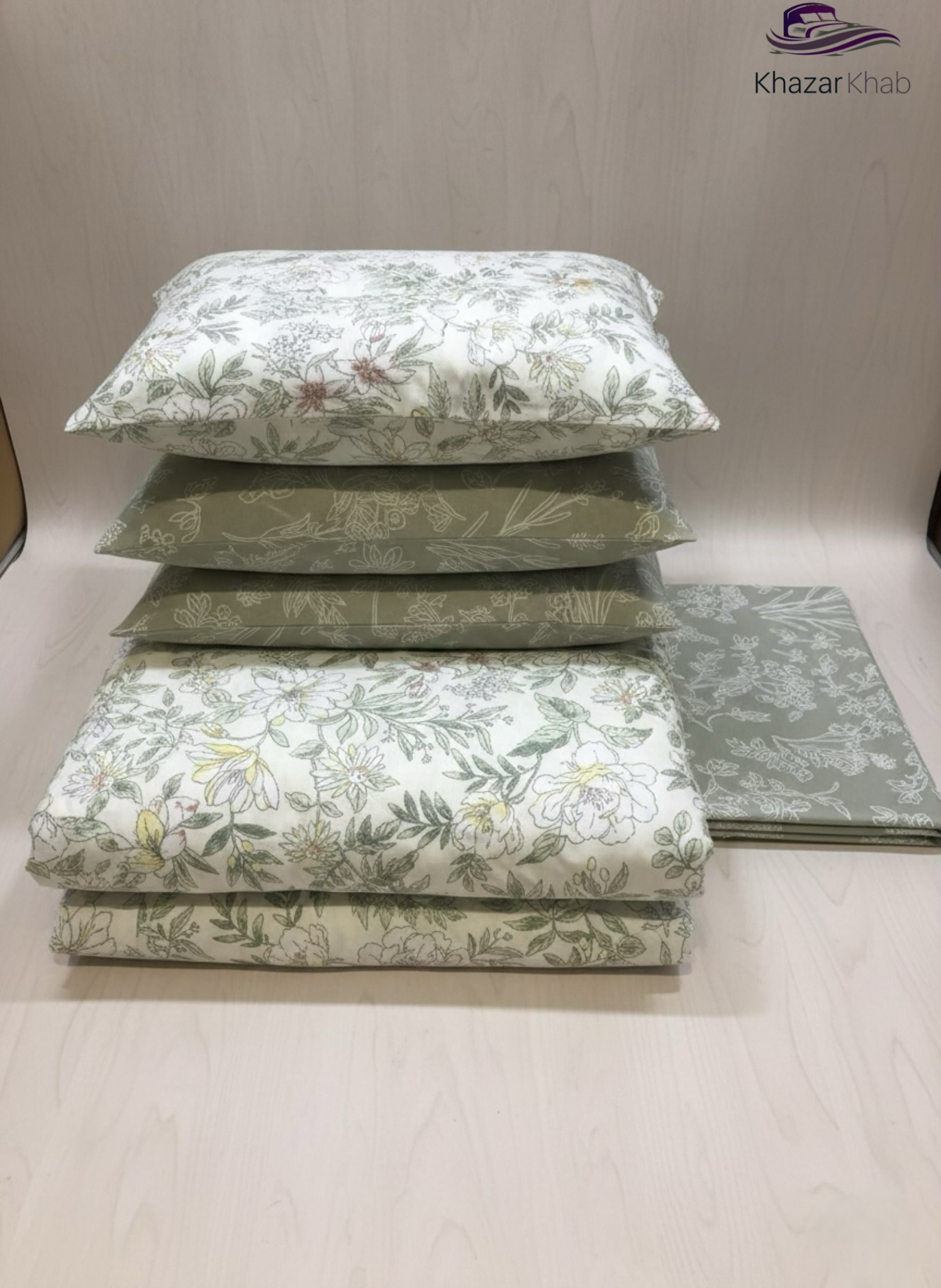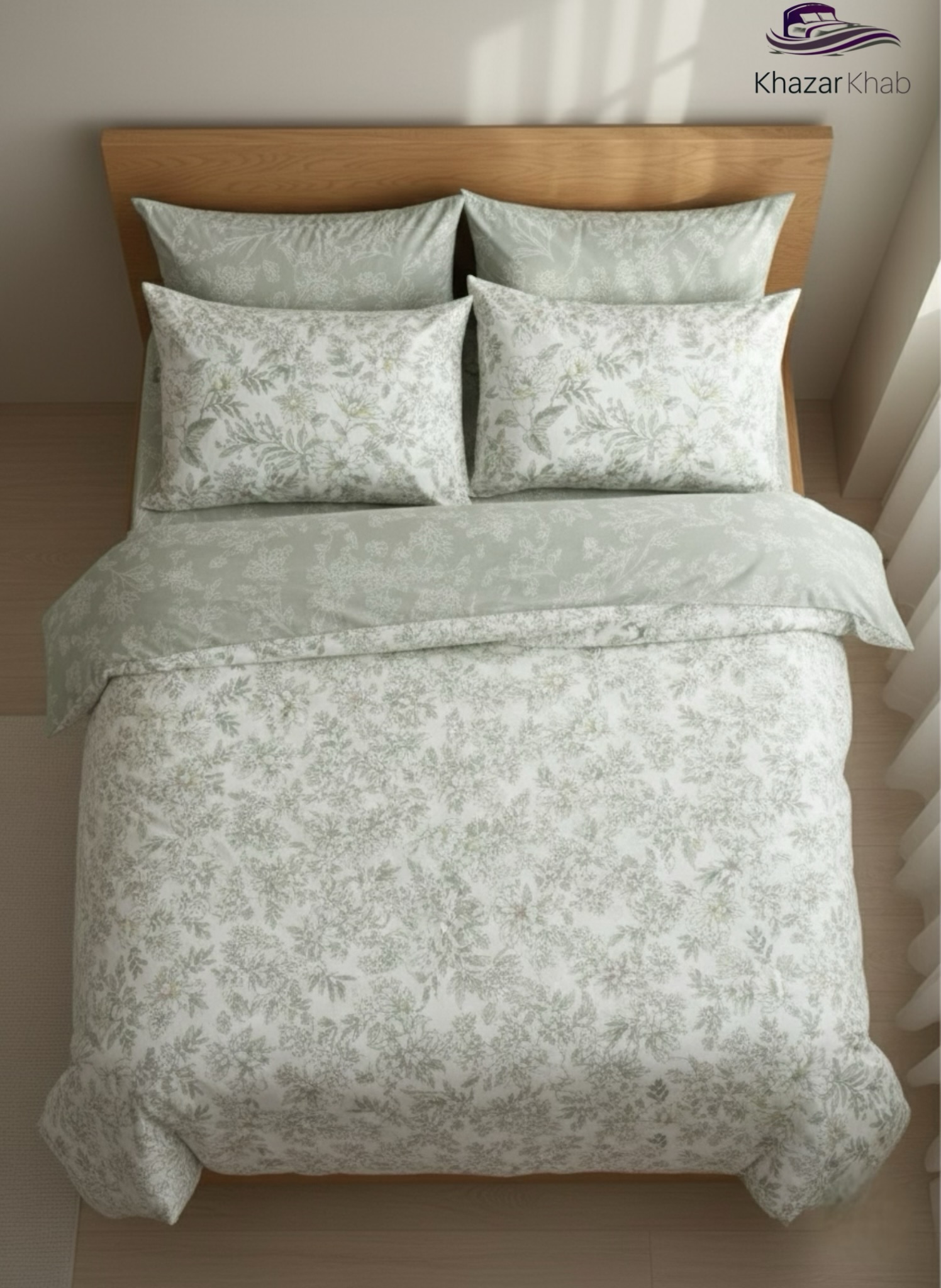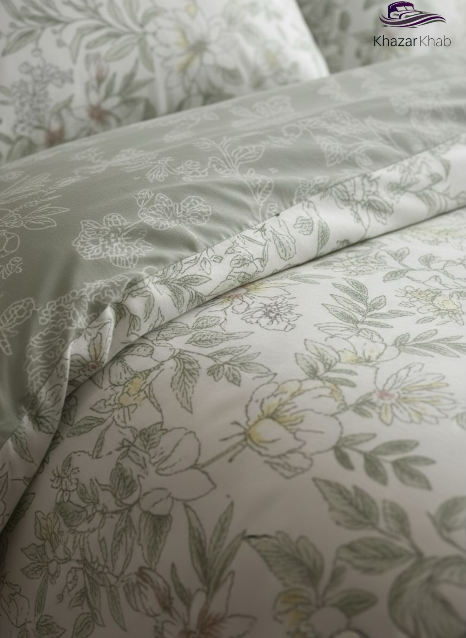 سرویس کاور دونفره نخ پنبه دو رو خزرخواب ۶ تکه (فلورا)