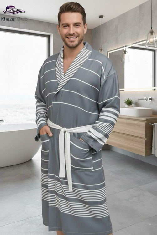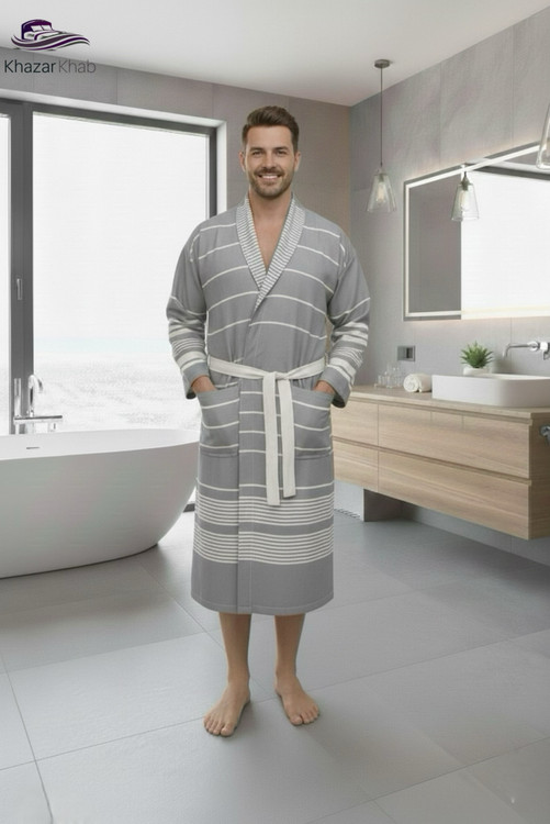 • طراحی شیک: برش آستین کیمونو که ظاهری امروزی و آزاد به حوله بخشیده است.