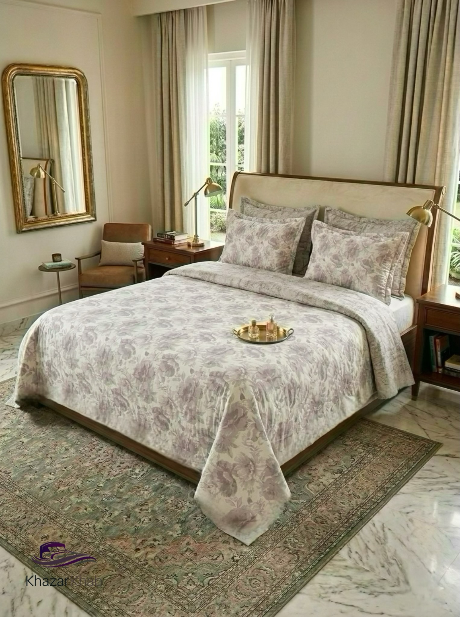 سرویس کاور دونفره نخ پنبه دو رو خزرخواب ۶ تکه (کِليزی)