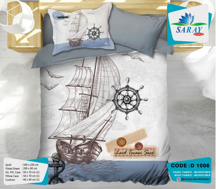 سرویس لحاف یکنفره سارای دارای یک ملحفه تشک یک لحاف و یک رویه بالش